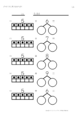 | 6-1 たし算基礎 あわせて5から10まで 2023.8 あわせて5になる組み合わせから10になる組み合わせまで | |||||||||