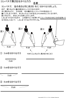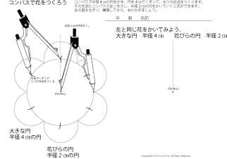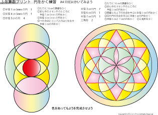 コンパスの練習  はじめは,コンパスを1回転させるのが難しいので,半円から始めます。