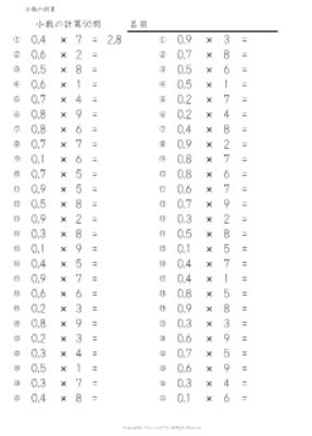 小数のかけ算 小数1桁2桁×整数1桁 |