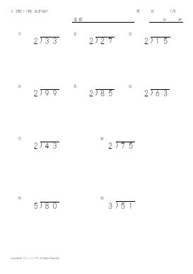 | 何十何百のわり算 | わり算基礎7枚 | わり算の筆算あまりなし | わり算の筆算あまりあり | 2桁÷1桁 あまりあり 2から9 |