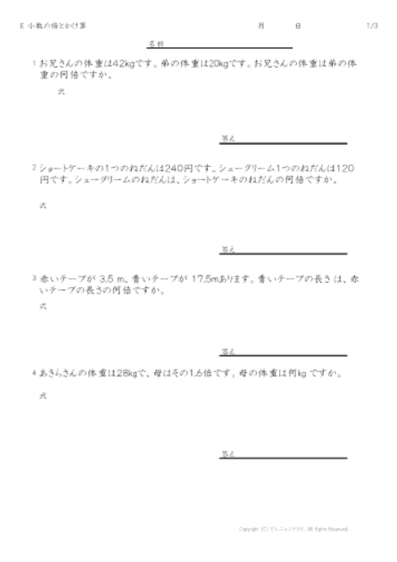 小数倍とかけ算 | 小数をかける | |||||||||||||||||||||||||||||