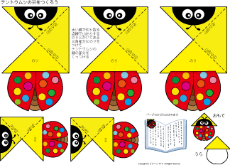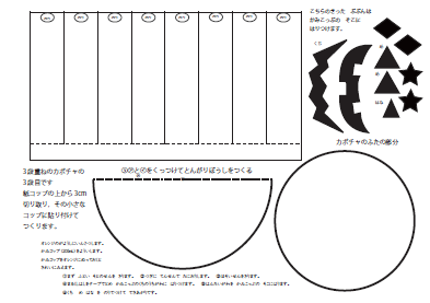 | ダウンロードすると原寸通りに印刷されないものがあります。ネットで調べると,ブラウザの違いによってもおこる。印刷機により原寸通りに印刷されないものもある。などいろいろな原因があるそうです。「少しずれが生じてる。」とはっきりわかるのは,紙コップなど寸法が決まっているものに使う用紙です。ダウンロードして実際に作って確かめていますが,作るのにはほとんど影響はありません。 | |||||