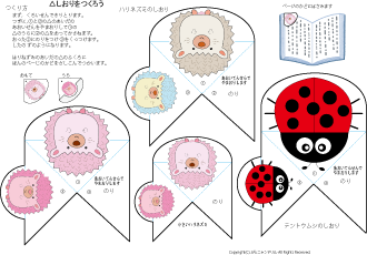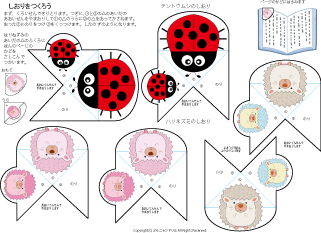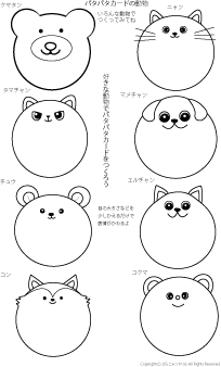 カードを開くとひょっこりキャラクターや言葉が出てきます。好きなキャラクターをかいてつくれます。カードは色鉛筆で好きな色をぬってね。 | |||