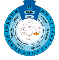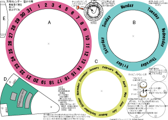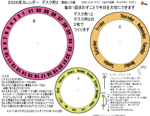 日本語 英語 両方あり つくりやすい万年カレンダーです 毎日 回して日や曜日をあわせていくので 今日 1日を意識しやすいです カラー版とモノクロ版あり 大きさ 直径 約15㎝ 英語と日本語両方あります |