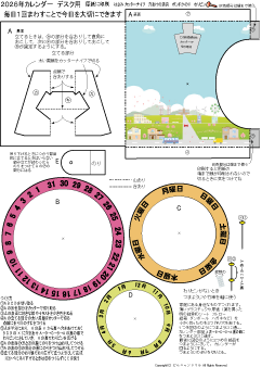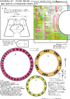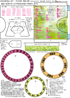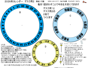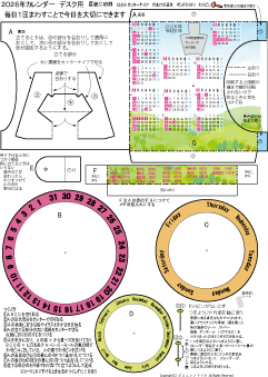 | 万年カレンダーかべかけ用 簡単 低学年でもできます 2025.7.28更新 A4厚紙に印刷 ハサミ のり 色鉛筆 わりピン(なければ つまようじ か 竹串) |