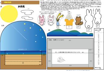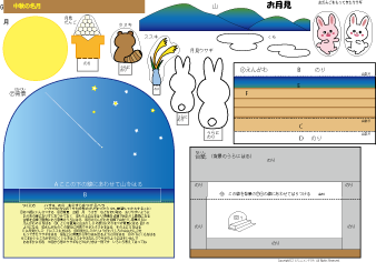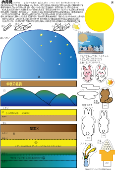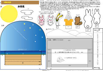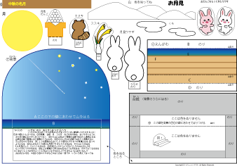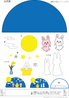 カラー版の月は色がプリンターによって微妙にちがうので別の用紙で色を塗ってつくった方が輝いている月ができます | |