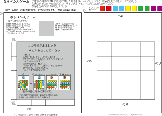 5 並べかえゲーム A4厚紙に印刷 ダンボール ハサミ のり セリアのカラーおはじき | |||||