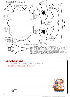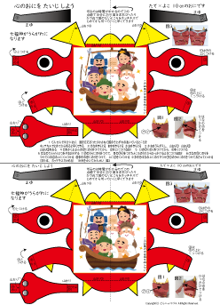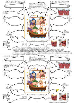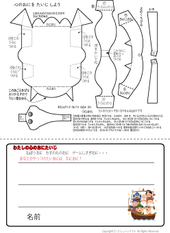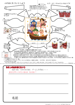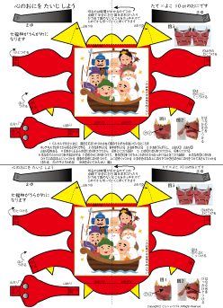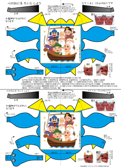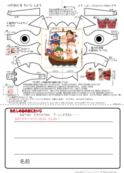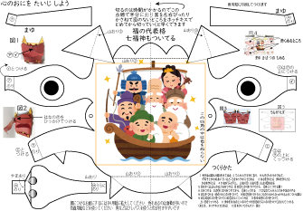 | 鬼のペーパークラフトと心の鬼をたいじしようが1枚になっています | |||||