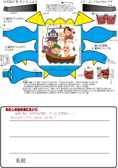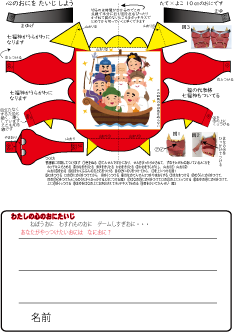 ![]() このようになります これはプリントの右下に七福神があるタイプです |