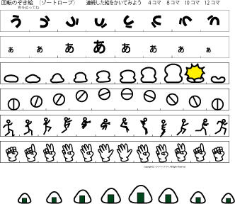 A4普通紙に印刷してね | フェナキストスコープ 鏡に映すとアニメーションが見られます | ||||