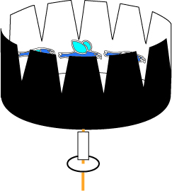 回転のぞき絵(かいてんのぞきえ、イギリス: Zoetrope、 フランスZootrope)とは、静止画を素早く入れ替えることで、あたかも動いているかのように見せる器具。ゾエトロープ、ゾートロープとも。zoetrope とは、ギリシャ語の zoe(生命)と trope(回転)を組み合わせた言葉で、「生命の輪」あるいは「生きている輪」という意味がある。 フェナキストスコープ(英: Phenakistoscope)またはフェナキスティスコープ(英: Phenakistiscope)は、回転のぞき絵(ゾートロープ)に先駆けて登場した初期のアニメーション機器。 ーウィキペディアよりー | |||||