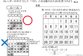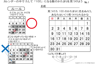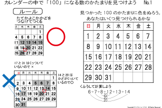 カレンダーの中にある たして100になるかたまりを見つけます | |||||
