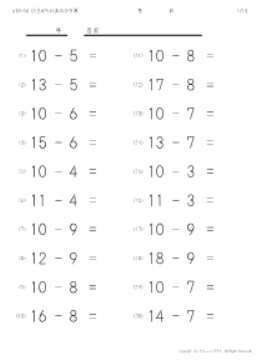 | 繰り上がり10問ずつ | 繰り上がり20問 | 繰り上がり36問 | 繰り下がり10問ずつ | 繰り下がり20問 | 繰り下がり36問1 |